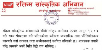 रक्तिम साँस्कृतिक अभियानको चौथो राष्ट्रिय सम्मेलन स्थागित